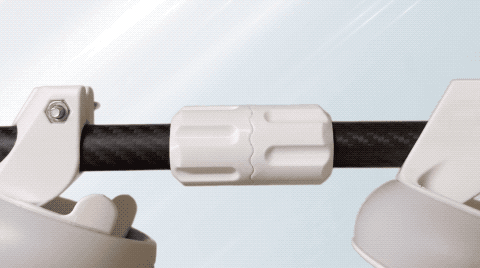 カーボンチューブは前後2つに分離する構造で、必要に応じてコントローラーを個別に操作できるほか、強力なマグネットにより、瞬時に元の位置に再結合します。
