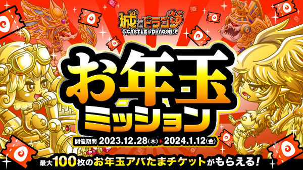 『城とドラゴン』で「お年玉ミッション」を12月28日(木)より開催!最大で“お年玉アバチケット”100枚ゲットできる!