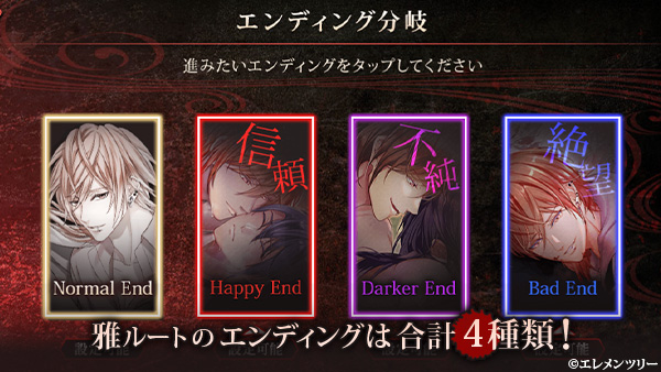 「ハッピーエンド」「ダーカーエンド」「バッドエンド」「ノーマルエンド」の合計4種類。