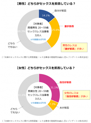 夫婦間のセックスレスのイメージは「一方はしたいと思っているが片方が応じない」というものでしょう。家事や育児などで疲れた妻が夫の求めに応じないイメージがありますが、実際はどうでしょうか。男性・女性別に「どちらが拒否しているのか」を聞いてみました。すると意外な結果が…。