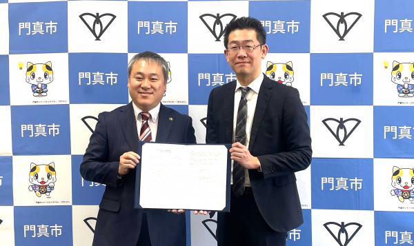 (写真:左から、門真市 宮本 一孝 市長、株式会社官民連携事業研究所 代表取締役社長 鷲見 英利)