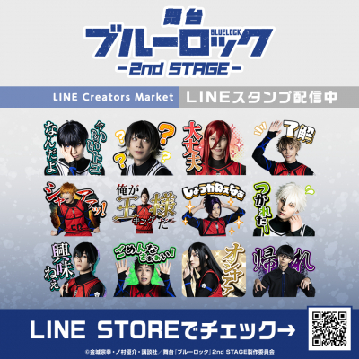 「舞台『ブルーロック』2nd STAGE」のLINEスタンプがインクルーズより配信開始!是非、LINEスタンプでも「舞台『ブルーロック』2nd STAGE」の世界観をお楽しみください。
