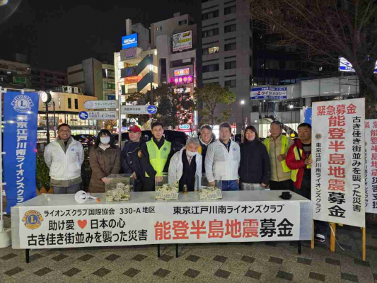ライオンズクラブ国際協会330-A地区(東京都・阿部かな子ガバナー)は、令和6年1月1日に発生した能登半島地震被災地への支援のために、東京都内各地での募金活動を行っています。