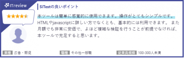 SiTest へのレビューは下記ページよりご確認いただけます。