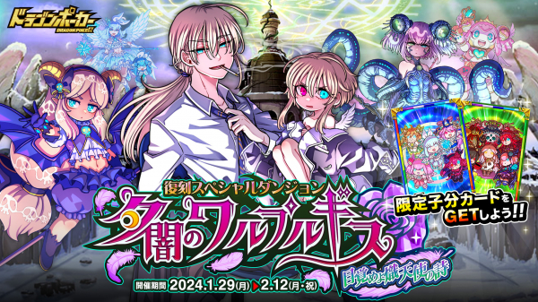 株式会社アソビズム(本社:東京都千代田区、代表取締役:大手智之)は、App Store・Google Playにて好評配信中のリアルタイム合体カードバトル『ドラゴンポーカー』で、2024年1月29日(月)より復刻スペシャルダンジョン「夕闇のワルプルギス 目覚めよ熾天使の詩」を開催いたします。
