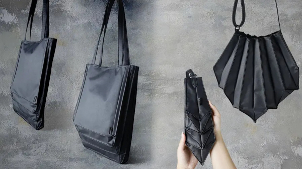 形は2タイプ。「ORINOアコーディオン」はA4サイズが余裕で入り、荷物を沢山入れた時はアコーディオンのように広がり、別の表情を見せます。「ORINOコウモリ」はコウモリの羽のように広がり、小物がすっぽり収納できます。