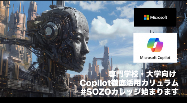 専門学校向け「生成AI授業導入支援カリキュラム#SOZOカレッジ」の提供を始めます!無料ツールMicrosoft Copilot の活用で、文章生成だけでなく画像/作詞/作曲で楽しい生成AI授業提供