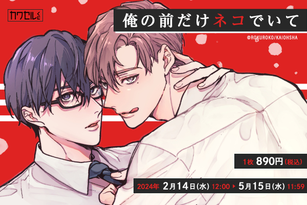 海王社×株式会社インクルーズが贈る「カワセルくじ 乙女部」最新作は、GUSH COMICSのろくろこ先生の作品「俺の前だけネコでいて」です。