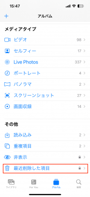 iPhoneの写真は、削除して30日以内であれば「最近削除した項目」から復元することが可能です。