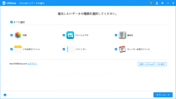 ステップ2.データを選択し「ダウンロード」をクリックします。