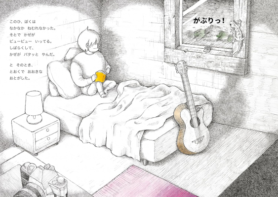 【絵本出版賞受賞作】繊細で美しい鉛筆画に一瞬で引き込まれる! 日常に潜む危機をダークに描いた、ちょっぴりこわーい絵本『がぶりえる!』2月27日発売