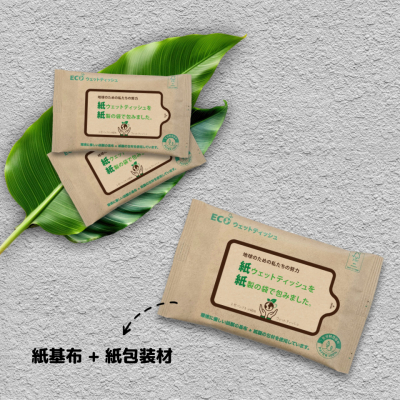 袋まで“紙ウェットティッシュ”既製品の発売が決定 -マイクロプラスティックのない脱炭素ウェットティッシュ-