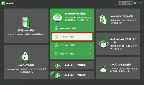 1.DroidKitを無料ダウンロードして起動し、データをクイック復元モードを選択します。