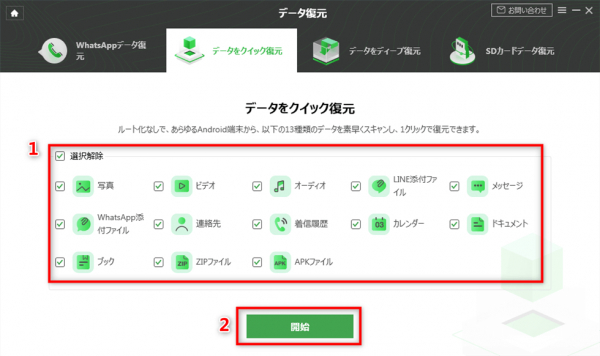 2.復元したいデータの種類を選択します。