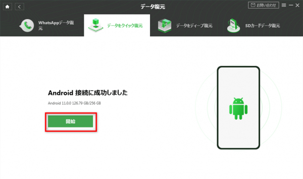 3.USBケーブルでAndroidデバイスをパソコンに接続します。「開始」ボタンをクリックします。
