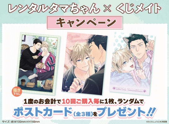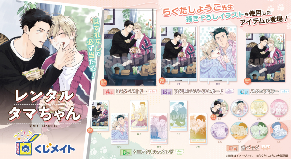 アニメイト通販「くじメイト」から大人気BLコミック『レンタルタマちゃん』のオンラインくじが登場!らくたしょうこ先生の新規描き下ろしイラストを使用した景品にもご注目♪