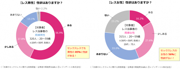 ●レス男性の85%は「性欲あり」と回答するも、レス女性の56%は「性欲なし」