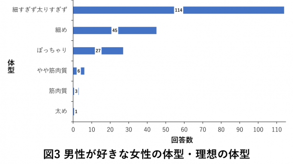 最も好まれていた体型は「細すぎず太りすぎず」。次に、「細め」を好む男性が多くみられました。