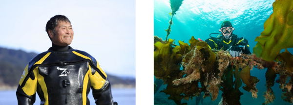 佐藤さんが信条とする言葉として「雨垂れ石を穿つ」という日本の諺があります。これは、雨水のような水滴でも少しずつ石に穴をあけることが出来るという意味で、簡単にあきらめてはいけないということです。2011年の東日本大震災後から開始した地元の海の復興活動はとても長い道程ではありますが、彼は決してあきらめませんでした。佐藤さんの故郷である三陸は、この大地震による津波の直撃を受けました。当時、タイの地元でダイブガイドとして働いていましたが、この災害発生を機に地元に戻り、今までダイビングを通して海の恩恵を大きく受けていたこともあり、恩返しの気持ちも強かったため、水中の復興活動を積極的に支援し、海を綺麗にするために「三陸ボランティアダイバーズ」を立ち上げました。現在、三陸ボランティアダイバーズは海藻の再生や増殖しすぎているウニの駆除活動、海底の清掃、海洋生物の生息地の保護に焦点を当てています。そして、愛している海を守るために、多くの学生やダイバーにこの活動を通して伝え、次のムーブメントを巻き起こすために努力しています。