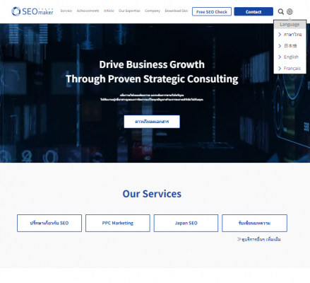 弊社には、日本人、タイ人、フランス人の多国籍SEOコンサルタントが在籍しています。タイにもオフィスを構え、タイ人のネイティブスタッフがタイ語のネイティブチェックを行います。