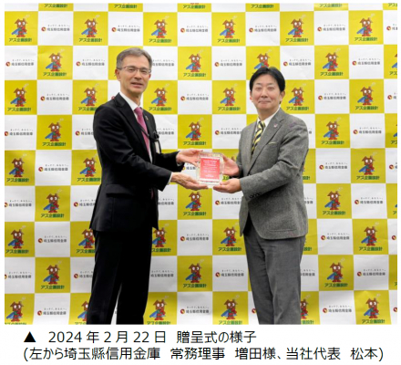 東京都を中心に、一都三県で不動産販売事業を行う株式会社アズ企画設計(本社:東京都千代田区、代表取締役:松本俊人)は、埼玉縣信用金庫(本部:埼玉県熊谷市、理事長:池田啓一)を引受先とする「さいしんSDGs私募債」を発行し、資金調達を実施しました。また、発行額の一部は埼玉県信用金庫を通じて、こども食堂・未来応援基金へ寄付し、2024年2月22日に贈呈式を実施いたしました。
