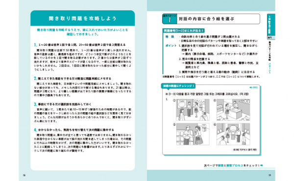 「聞き取り」「筆記」「読解」の3技能すべて過去に出題された問題を徹底的に分析し、解答ステップ(問題を解く際の手順)に沿って解説を細分化。「答え」そのものだけでなく「解き方」が身につくので、新しい問題に挑戦するときの再現性も抜群です。
