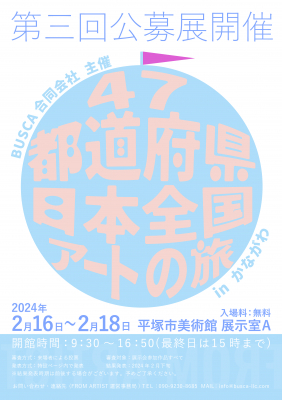 BUSCA合同会社(本社:茨城県水戸市、代表:戸井田 翔馬)の公募展、第3回 「47都道府県を巡る!日本全国アートの旅 」in 平塚市美術館で行われたンテストの投票結果を2024年2月28日に発表しました。