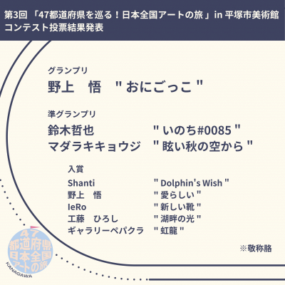 第3回 「47都道府県を巡る!日本全国アートの旅 」in 平塚市美術館 コンテスト、投票結果発表!