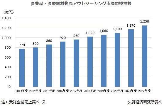 【矢野経済研究所プレスリリース】医薬品・医療器材物流アウトソーシング市場に関する調査を実施(2024年) 2022年度の医薬品・医療器材メーカー物流アウトソーシング市場は1,250億円