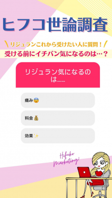 最初の質問は「リジュランを受けたことはある?」です。