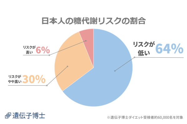 ダイエット遺伝子検査サービス『遺伝子博士』の受検者約6万人のデータを分析したところ、なんと約64%の日本人が糖質で太りにくい体質であることが判明しました。