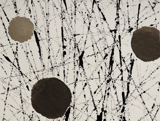 《墨-混乱秩序-天地人》展覧会には黄川心氏の初公開作品「天矩圓」、「地幾方」、「人畸角」も展示され、「天地人」を中心とした墨?色の世界が創られます。墨の何層にも渡る濃淡、黒と白の配合により黄川心氏は線と墨色で世界の広がりと複雑さを表現しています。彼女は線を人生で進む足跡に例え、それは計画されたものでありながらも、制御できないものであり、追求、脱線、滑走する度に生命に解釈と考察の機会をもたらすと表現しています。