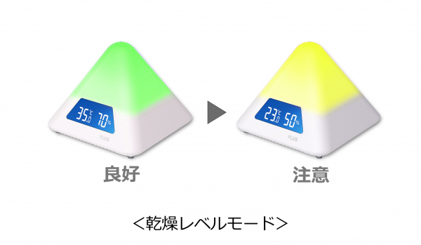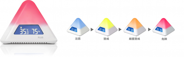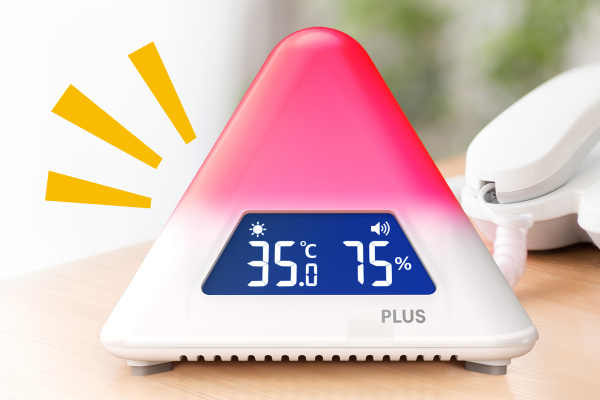 プラス株式会社(東京都港区 代表取締役社長 今泉忠久)は、2022年発売の「CO2モニター」に続き、環境を色で可視化するシリーズ第2弾として、ピラミッド型本体のLEDカラーが4色に変化して室内の熱中症の危険度を分かりやすくお知らせする「温湿度LEDアラーム」を2024年3月29日から販売開始いたします。