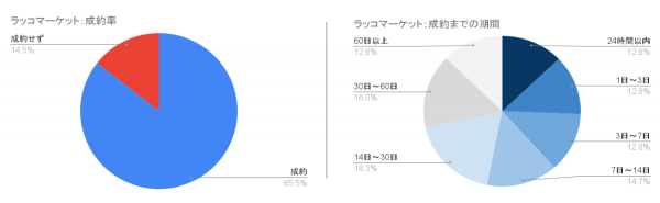 1,000件の成約案件の内訳では、出品から3日以内に成約した案件が25.6%ありました。さらに53.1%が14日以内、71.4%が30日以内に成約していました。出品から成約までのスピードの速さも特徴的です。