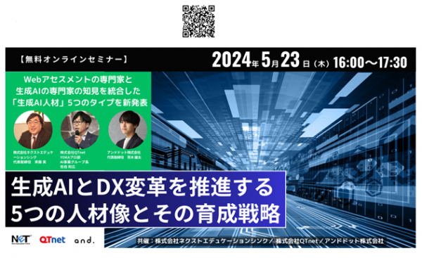 ネクストエデュケーションシンク社、企業のビジネス成長戦略のカギである「生成AI」を活用し推進する人財を5つの人材像に定義し、その育成戦略を発表する【Webセミナー】5/23開催