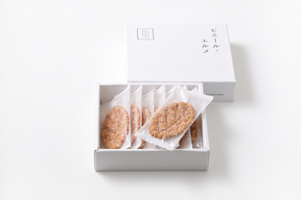 日本生まれの菓子として知られる「リーフパイ」をローズ風味に。バターをたっぷり使用したパイの上に、ローズ色のザラメを散りばめた、見た目にも華やかな一品。サクサクとした食感と上品な甘さはやみつきになるおいしさです。手土産にもぴったりです。