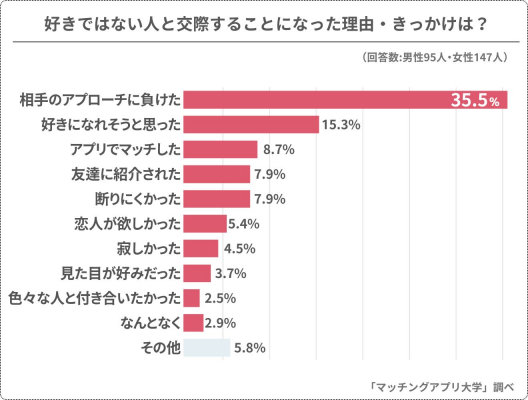 調査対象:18歳〜39歳の好きでない異性とお付き合いした経験がある男女