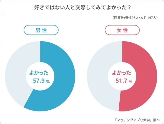 最終的に多くの人が破局を迎えた好きでもない人との交際ですが、お付き合いしたことについてよかったと思うかどうか尋ねてみると…。