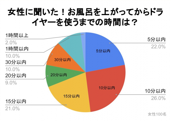 女性の約半数が10分以内にかけている!「お風呂を上がってからドライヤーを使うまでの時間は?」のアンケート調査