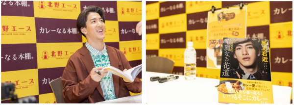 イベント冒頭では、アンバサダー就任への意気込みやカレーへの愛をコメント。「カレー好きの僕にとって、カレーなる本棚(R)はパワースポットです。」と北野エースのカレーなる本棚(R)への印象を語られました。『華麗なる花道』の中にも登場するレトルトカレーに関する想いやおすすめの食べ方など、お客様を間近にしてキリリと華やかなご挨拶をいただきました。今回のイベントを皮切りに北野エースカレーなる本棚(R)公式アンバサダーとして様々な企画を予定しています。今後のお知らせを楽しみにお待ちください。