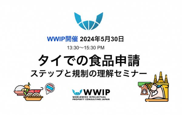 株式会社ワールドワイド・アイピー・コンサルティングジャパン (以下「WWIP」) は、2024年5月30日(木)13:30〜15:30に、「タイでの食品申請ステップと規制の理解セミナー」を開催いたします。