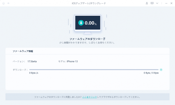 Step2:UltFone iOS System RepairはiOSのバージョンを自動的に検出し、ダウングレード可能なiOSファームウェアを表示します。iOSファームウェアの情報を確認してから、「ダウンロード」をクリックします。