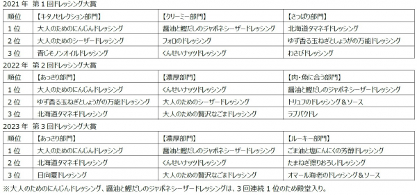 北野エーススタッフが選ぶ「第4回ドレッシング大賞」発表。 「大人のための贅沢なごまドレッシング」が初の1位に