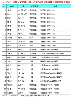 外国人向け介護福祉士国家試験対策オンライン1年間コースを無料で受講、修了した特定技能外国人8名が今年1月に行われた第36回介護福祉士国家試験を受験しました。見事7名が高得点で合格し、この春に介護福祉士になります。