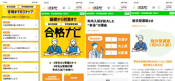 この度、旺文社が新しく公開する「総合型選抜・学校推薦型選抜 合格ナビ」では、高校3年生向けの受験対策だけでなく、高校1・2年生からやっておくべきアクションなどを掲載し、年内入試受験を検討しているすべての高校生をナビゲートしてまいります。
