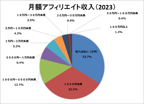 ■アフィリエイト市場調査2023:月3万円以上が9.4%、月1,000円未満が66.2%