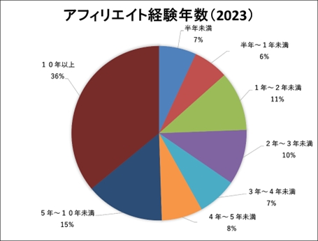 運営しているサイト数や1日あたりアフィリエイトにかけている時間に大きな開きがある事が分かります。アフィリエイトは誰でも簡単に稼げるわけでは無く、「時間と労力をかけ、しっかりとサイトを運営・管理しているアフィリエイトサイト運営者ほど、アフィリエイトで高い収入を得られる傾向にある」という点が2023年度のアフィリエイト市場調査によって示されております。