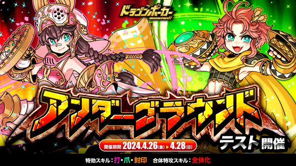 株式会社アソビズム(本社:東京都千代田区、代表取締役:大手智之)は、App Store・Google Playにて好評配信中のリアルタイム合体カードバトル『ドラゴンポーカー』で、2024年4月26日(金)より「アンダーグラウンド」をテスト開催いたします。