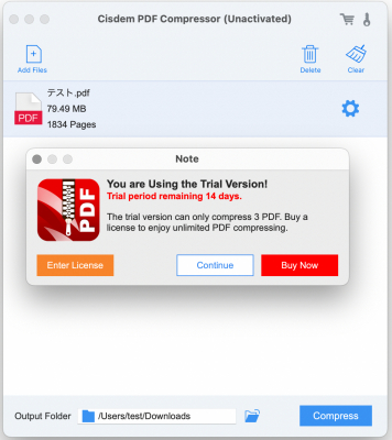 無料体験版は、14日以内に3つのPDFを圧縮できます。14日後、または3つ以上のPDFを圧縮したい場合は購入する必要があります。