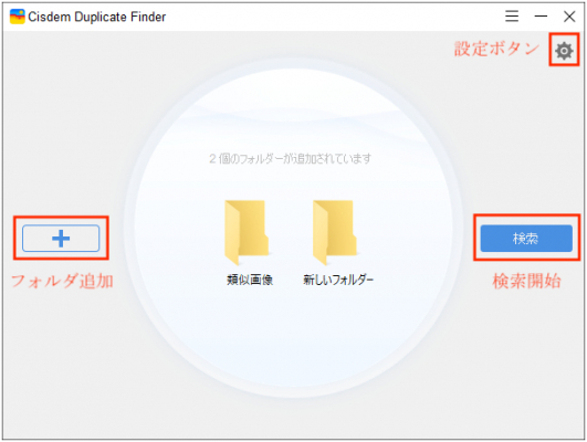 2.類似画像を保存しているフォルダをソフトにドラッグ&ドロップで追加します。あるいは、「+」ボタンをクリックして追加します。